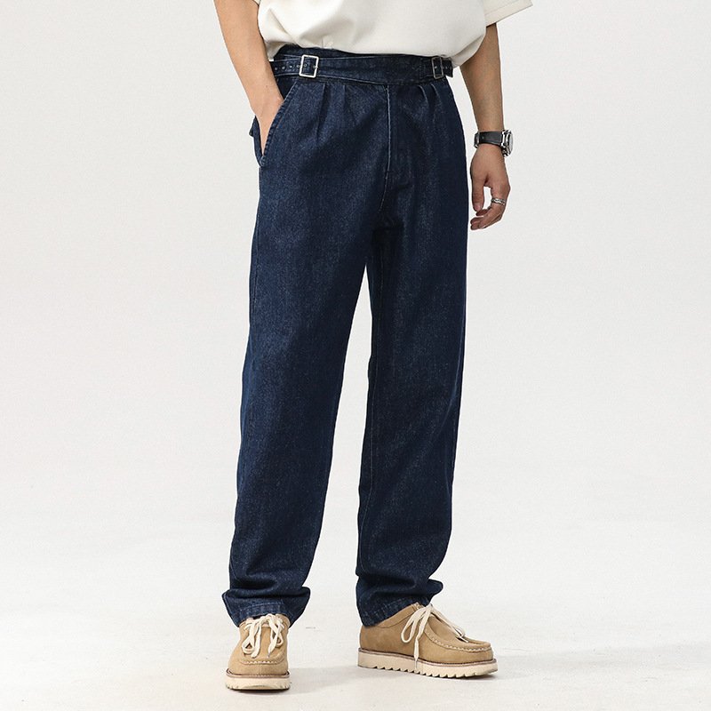 Blue Denim Straight High Waist Jeans For Men