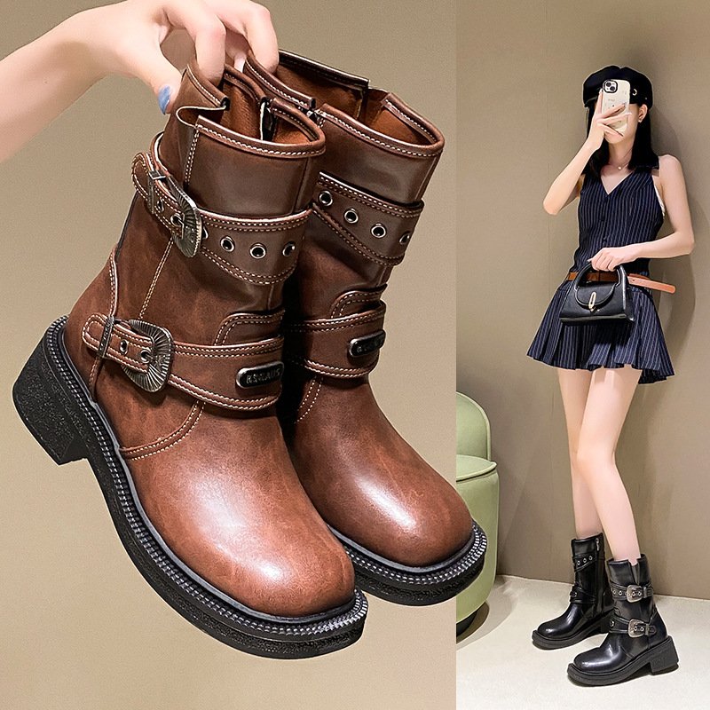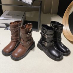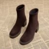 Brown Women’s Ankle Boots Retro Square Toe