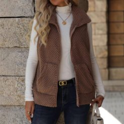Cardigan Zipper Loose Pocket Double-Sided Fleece Vest