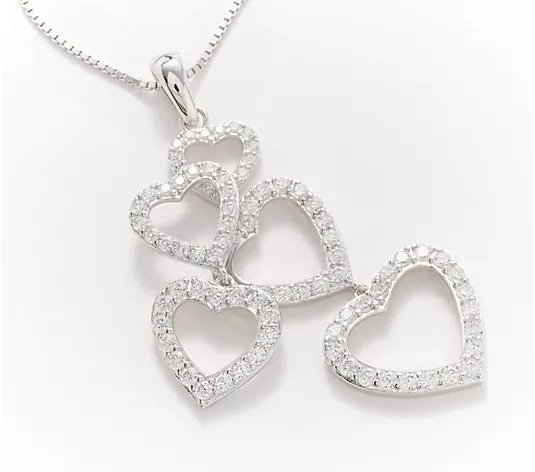 Diamonique x Kathy Levine Hearty Party Pendant on 24" Box Chain