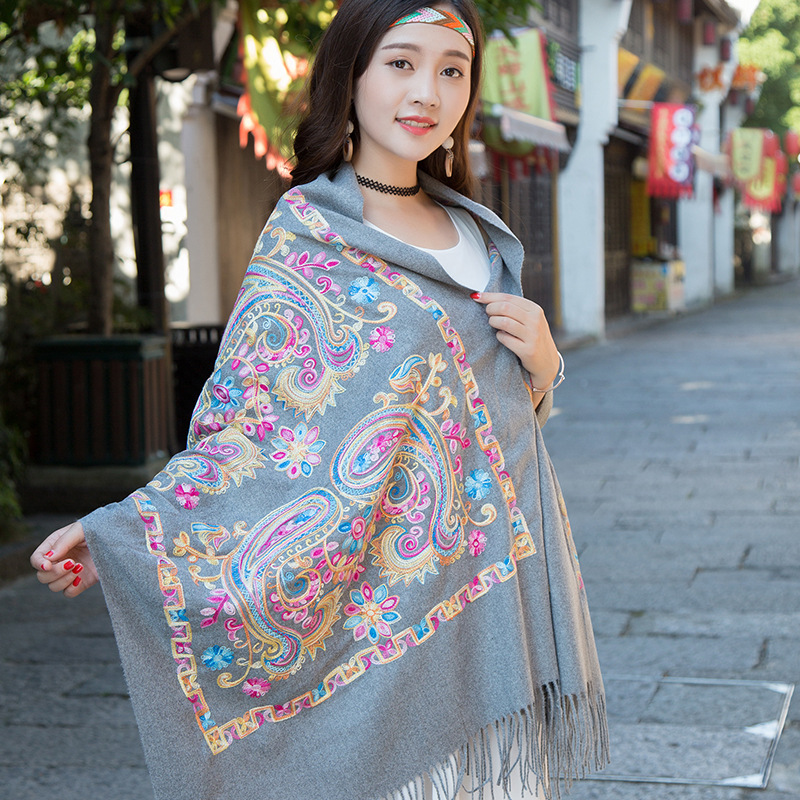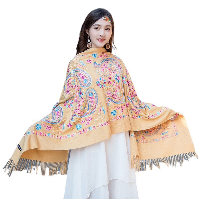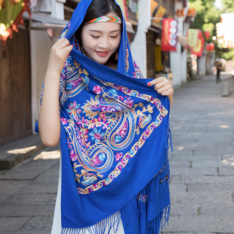 Embroidered Ethnic-Style Great Wall Cashew-Pattern Embroidery Cashmere Scarf