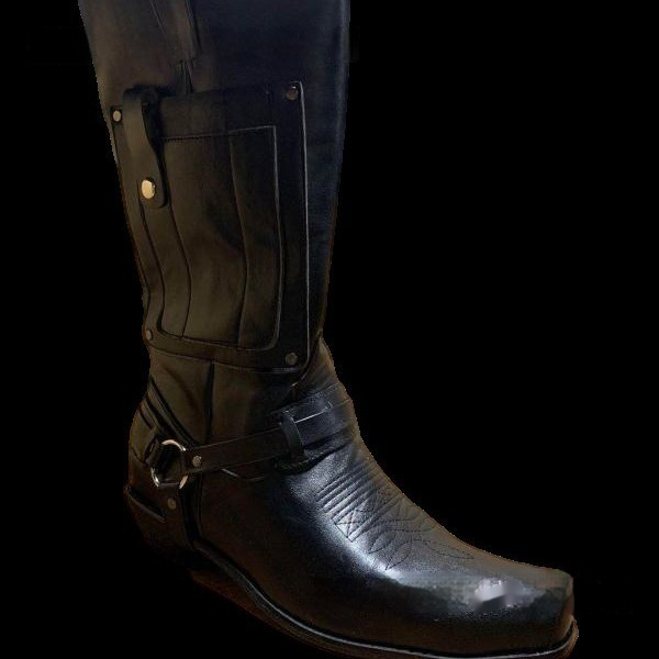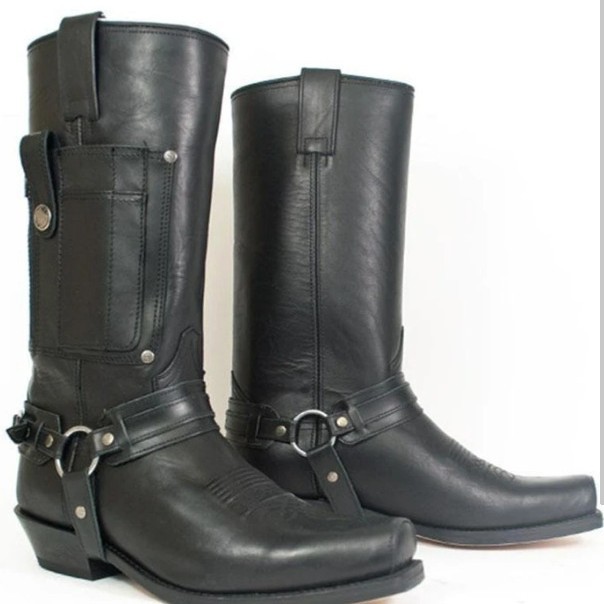Embroidered Knight High-Heel Leather Mens Boots