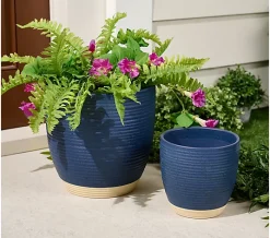 Garden Reflections Set of 2 Stoneware 2-tone Planters