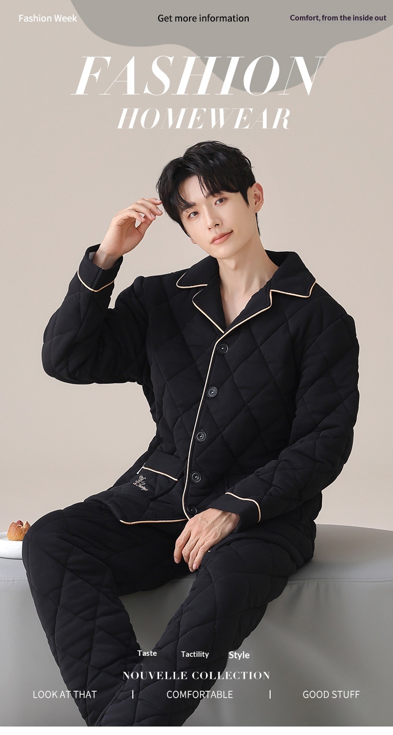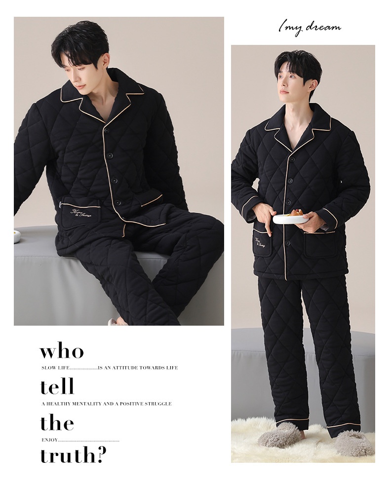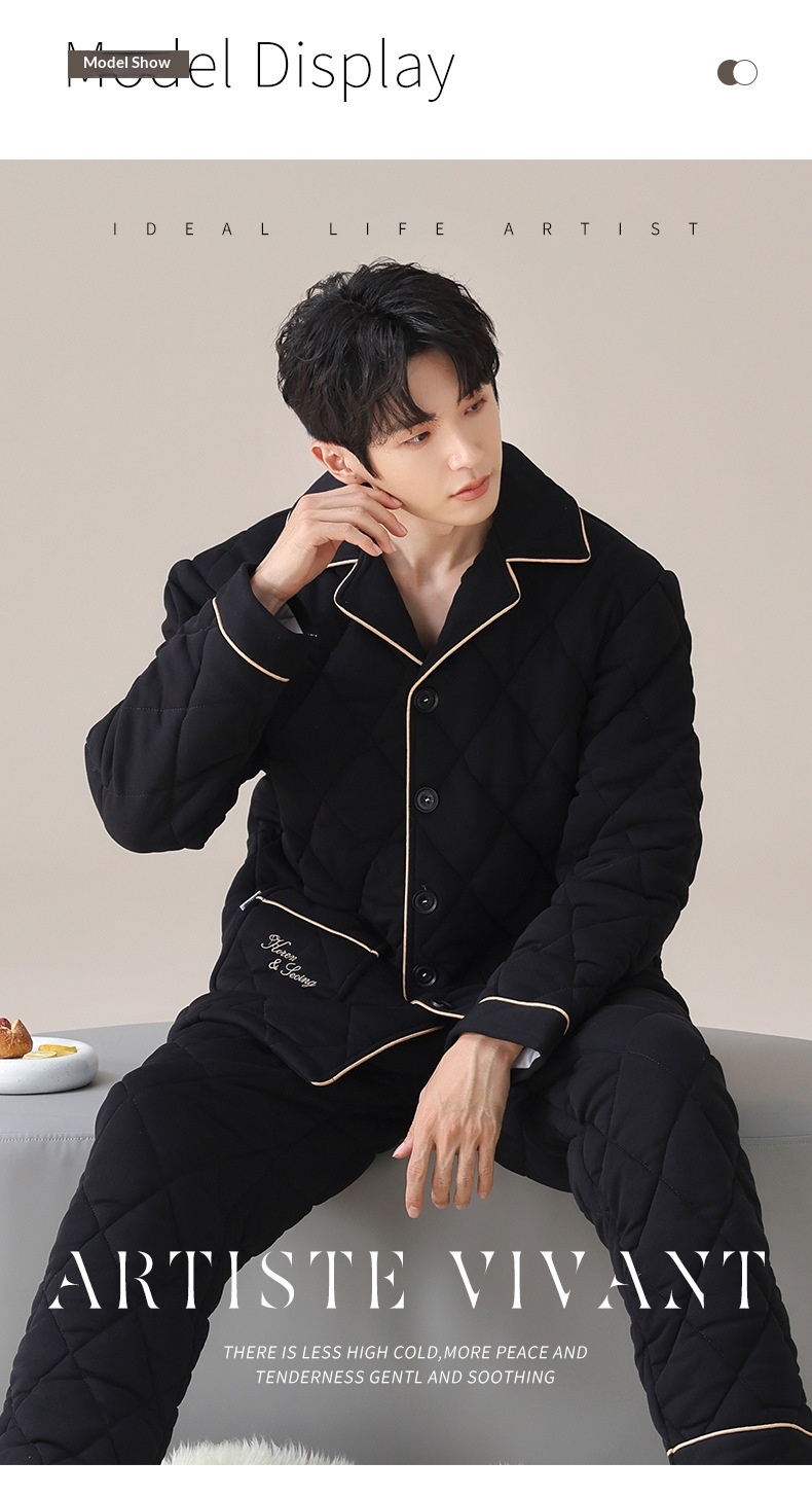 Mens Three-layer Quilted Loungewear For Fall And Winterwear It Indoors Or Out