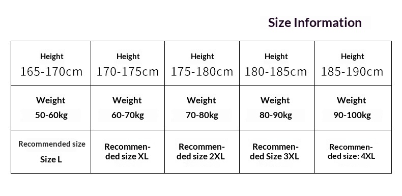 Sizes: Men’s L, Men’s XL, Men’s XXL, Men’s XXXL
