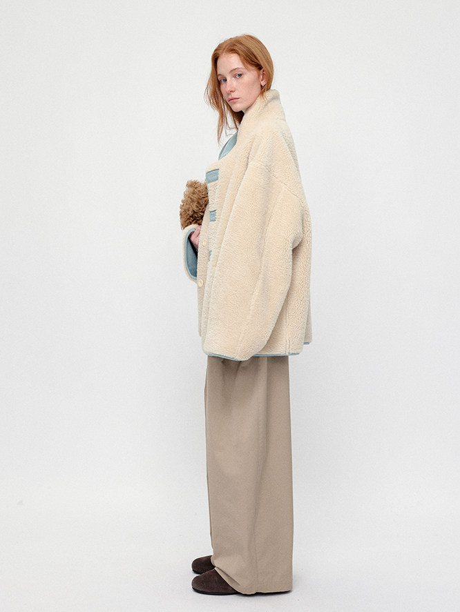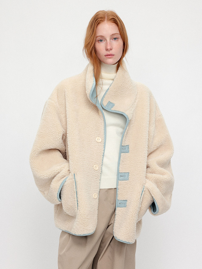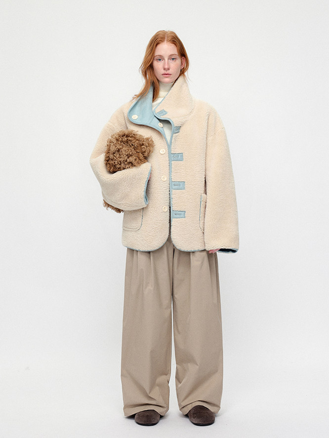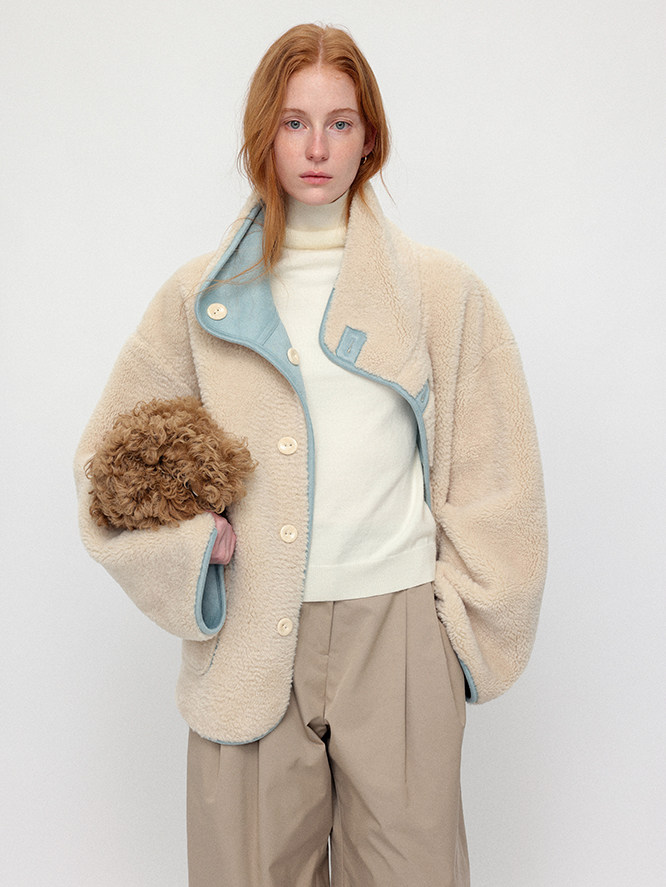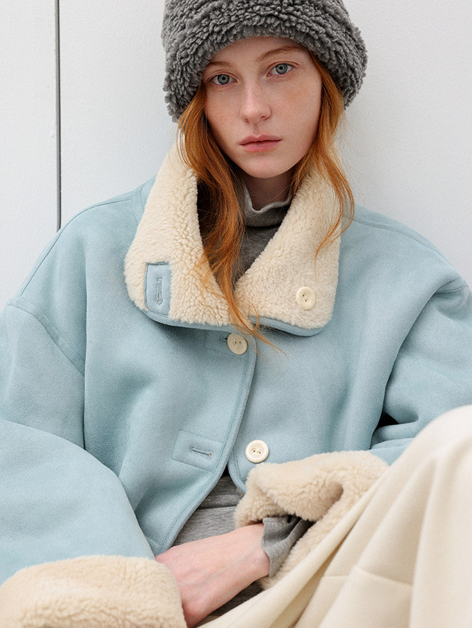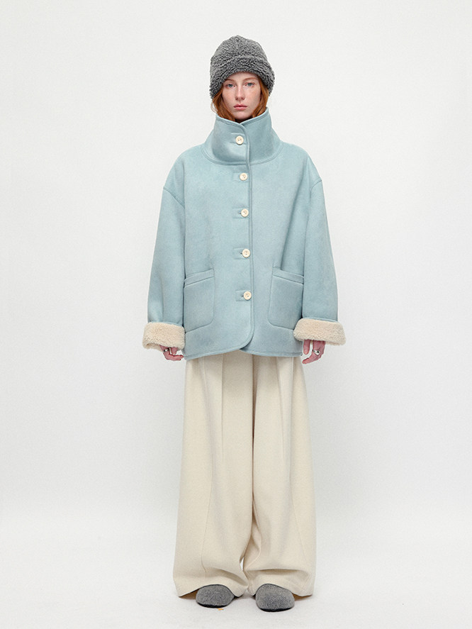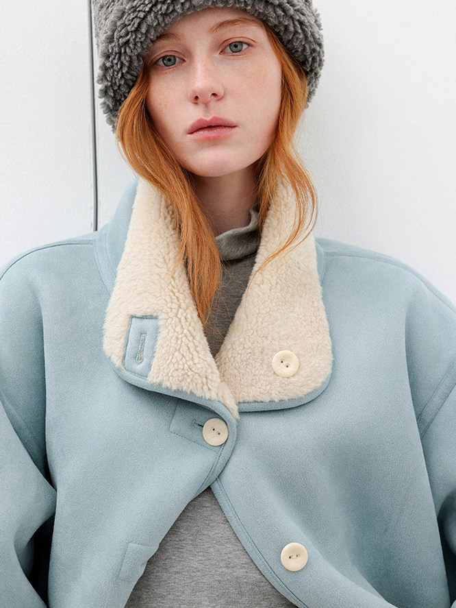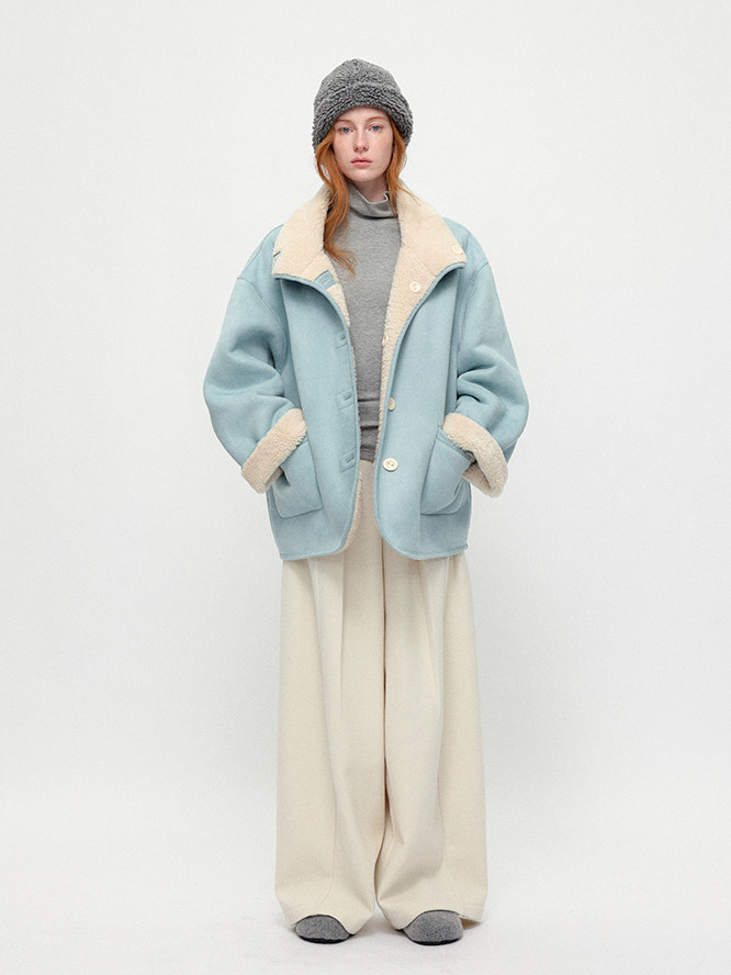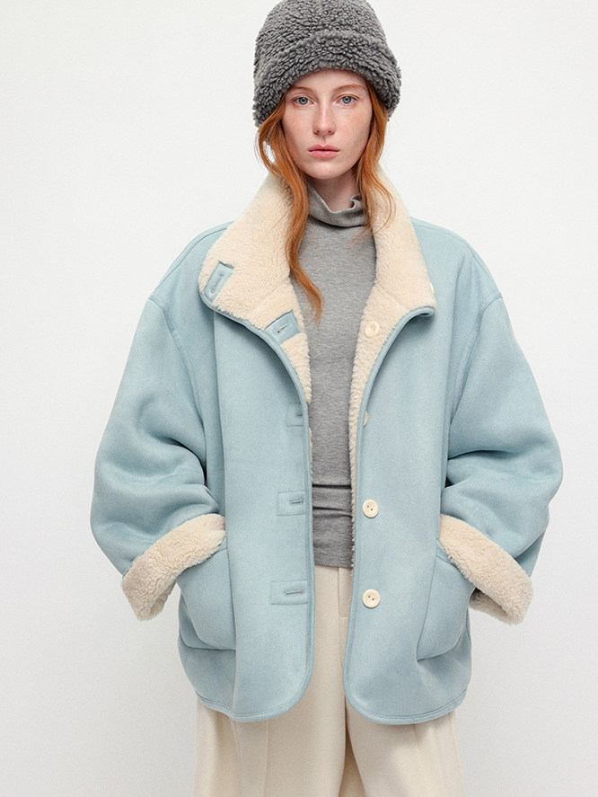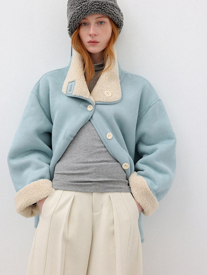 Sea Salt Cream Cup A Heavyweight Dual Wear Designshearling Suede Windproof Coat